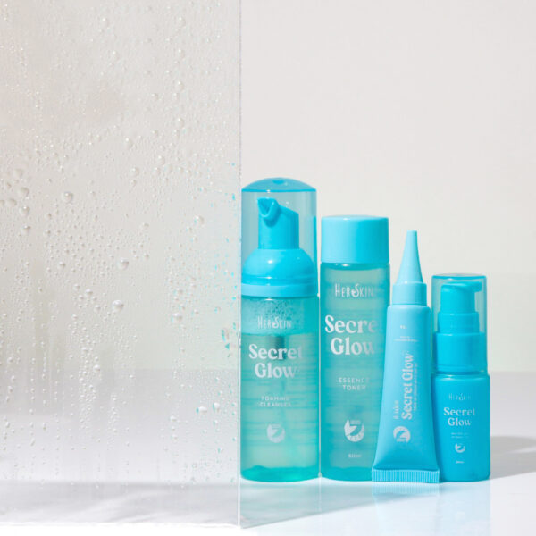 After cleansing the regimen in the morning and at night, apply a small amount of HerSkin Secret Glow Water Gel Hydrator and evenly massage into your skin. Allow it to be absorbed completely.